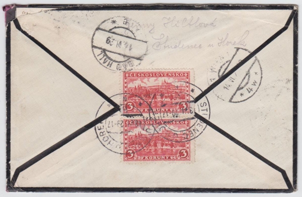 smíšená frankatura oboustranně na obálce; STUDENEC U HOREK 13.VI.29