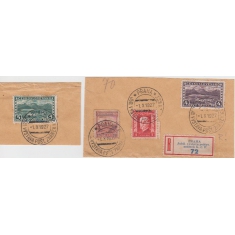 nálepní list se známkou 322-323K, Purkyně s kupóny, různá příležitostná razítka? AUTOPOŠTA, CELOSTÁTNÍ VÝSTAVA a reklamní strojové razítko BRATISLAVA 30.X.37; velmi hezké