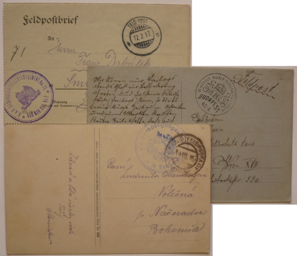1915 Sestava 3 celistvostí polní pošty