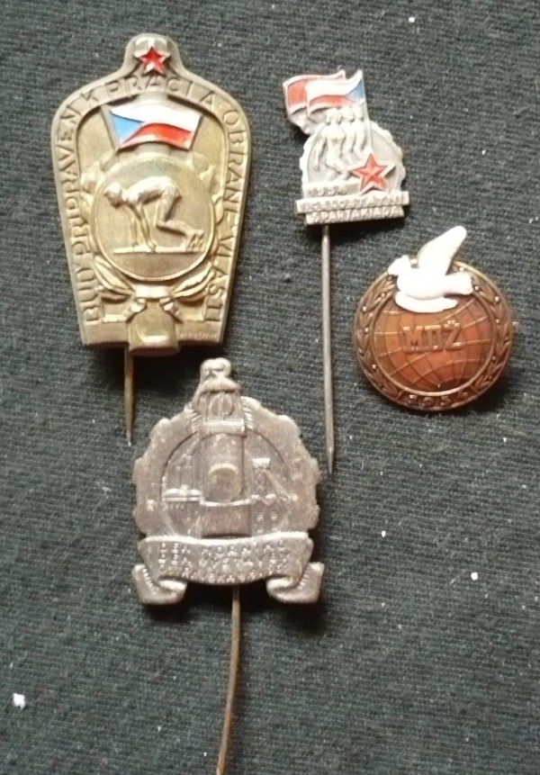 sestava 4 odznaků, mj. MDŽ, Spartakiáda, Den horníků, ...